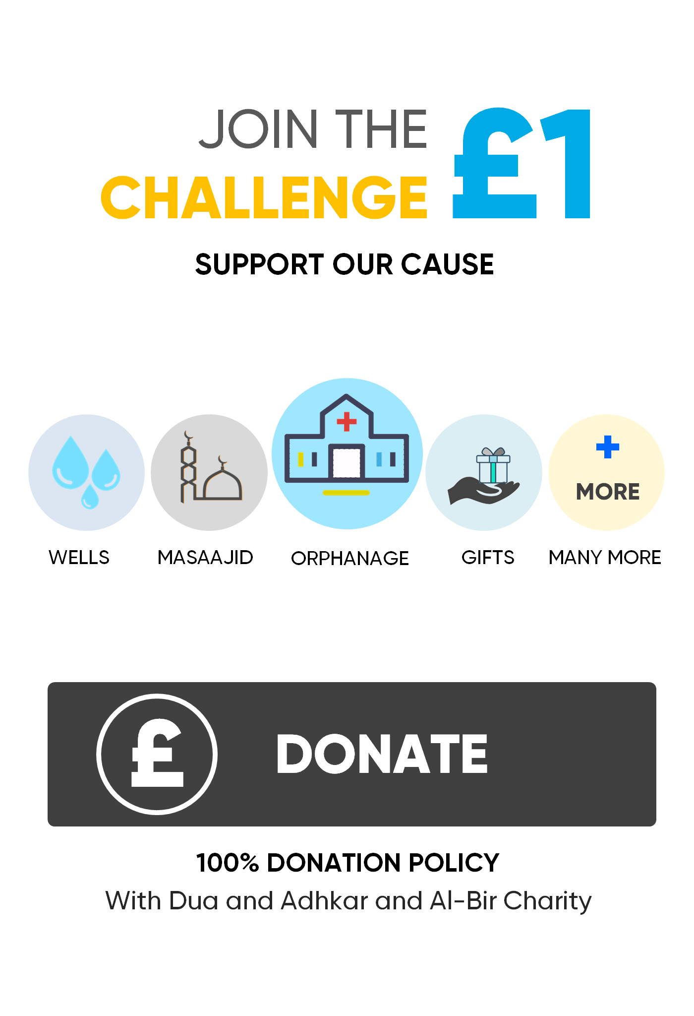We are challenging all our users to DONATE JUST £1 (or more) towards our Water Wells, Orphanage, Elderly Home, Mosques and Educational projects around the world.